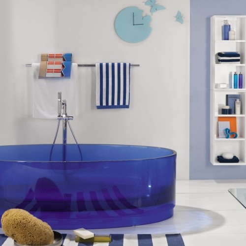 - Pentru a da personalitate incaperii, poti utiliza culori contrastante si luminoase, cum ar fiverdele aprins si/sau portocaliul luminos pentru pereti. Daca vrei o baie in stil oriental,foloseste culoarea rosu pe pereti – confera incaperii o ambianta dulce si intima. Pentru pardoseala, alege un parchet din lemn de pin tratat pentru a rezista la apa, iar pentru protectie, in fata spalatorului pune un covor mare, vechi.